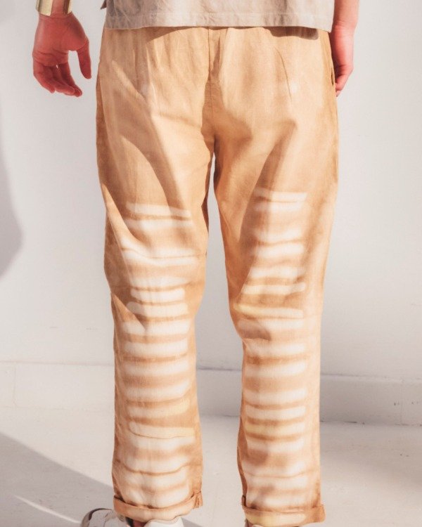 Producimos nuestras prendas de manera artesanal usando materiales y tintes naturales que hacen que cada una de ellas sea diferente e irrepetible.