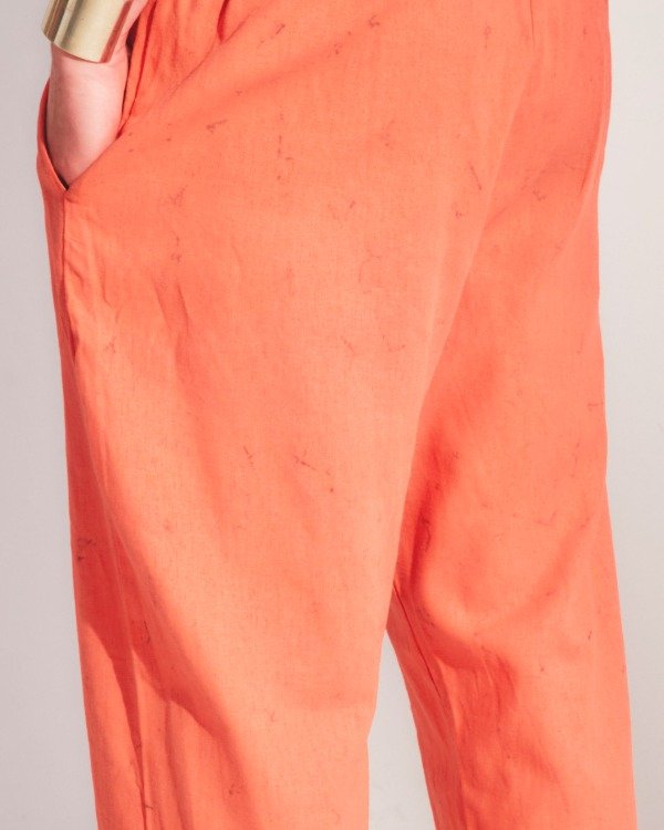 Pantalón con bolsillos laterales. Cintura con elástico y lazo de algodón.