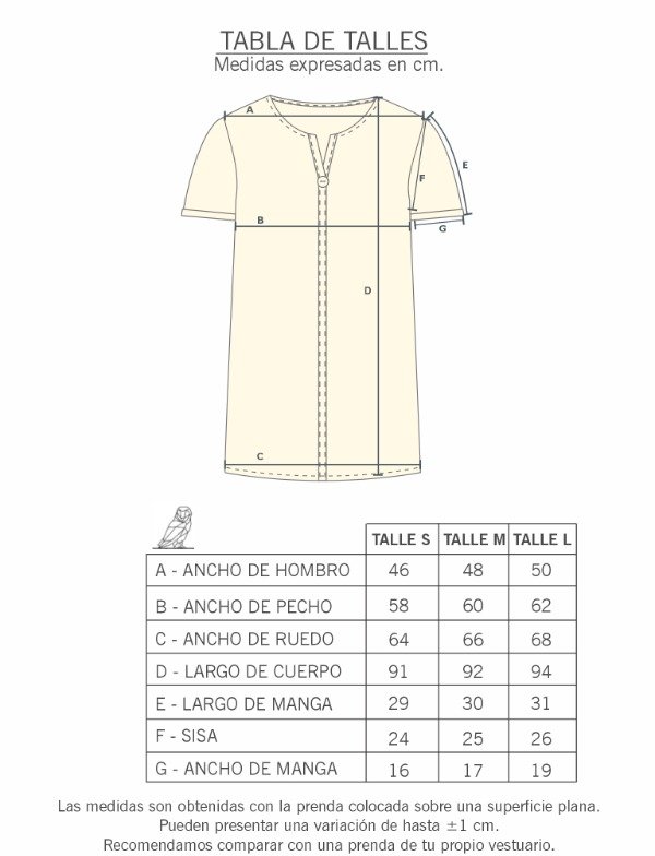 Túnica manga corta, cuello redondo. Con detalle de botón cerámico y bolsillos laterales. Y con tajos laterales