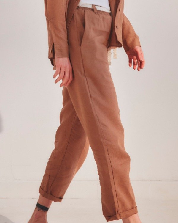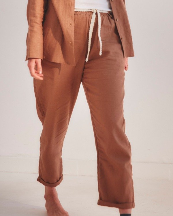 Confeccionado en Lino/Viscosa, tela liviana y super fresca con un toque de textura rústica.