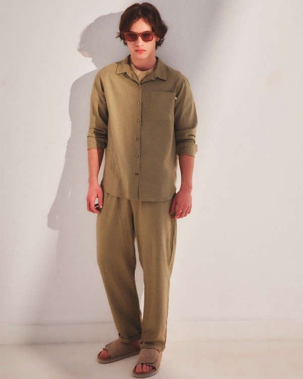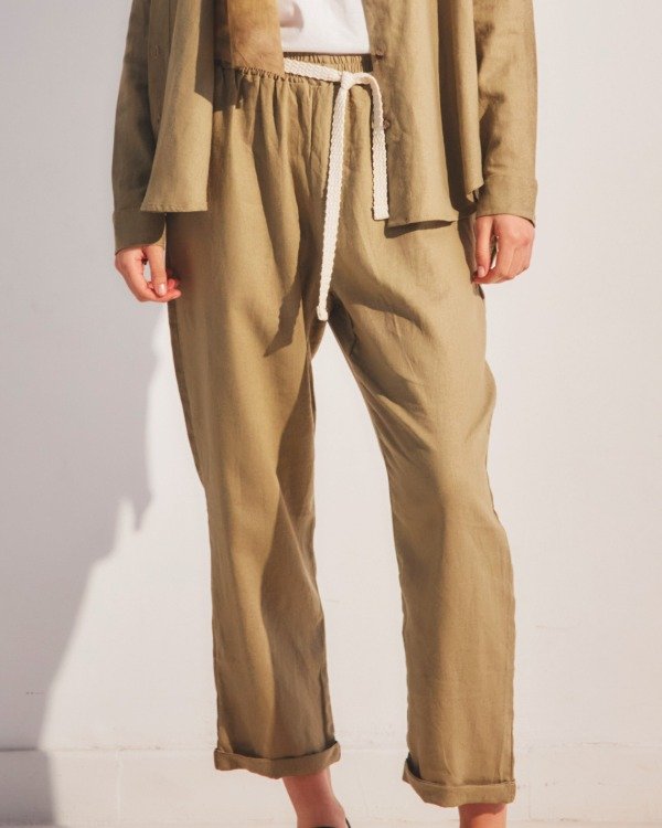 Confeccionado en Lino/Viscosa, tela liviana y super fresca con un toque de textura rústica.
