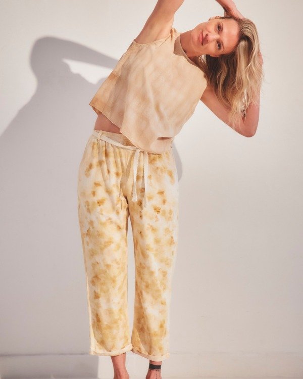 Técnica de estampa: Ecoprint, con cáscaras de cebolla.