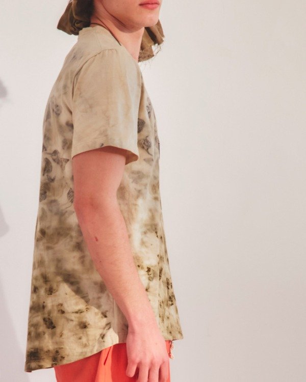 Para la estampa de esta remera usamos: Hojas de Eucaliptus y Cáscaras de cebolla.