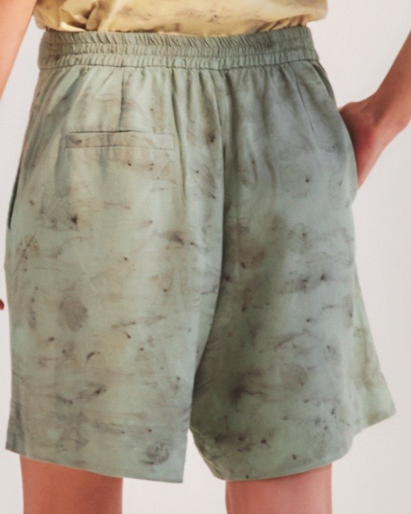 Bermuda con bolsillos laterales, cintura con elástico en su espalda.