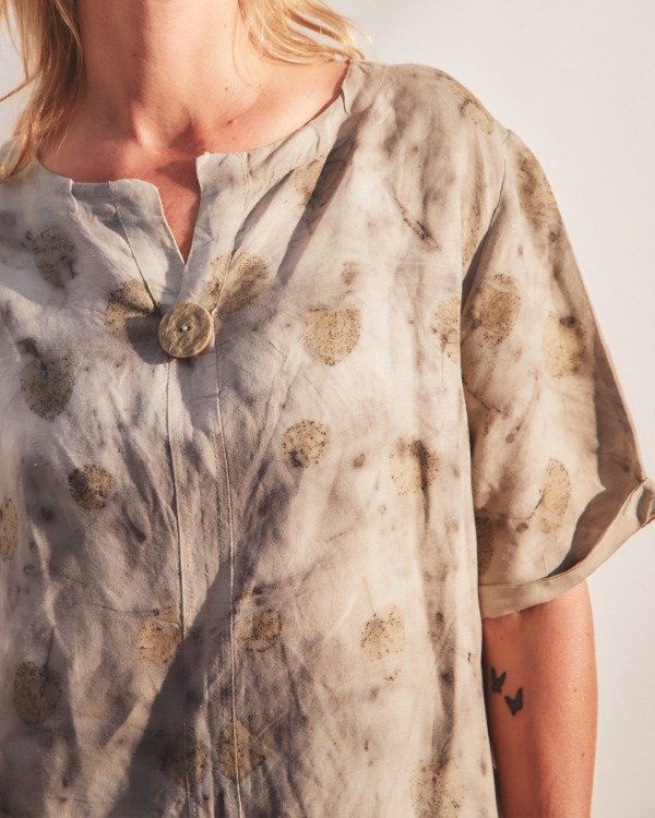 Técnica de estampa: Ecoprint, con hojas de Eucaliptus. Libre de químicos.